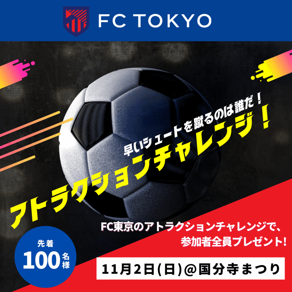 ブースでは、FC東京のアトラクションチャレンジで、参加者全員プレゼント企画を予定!